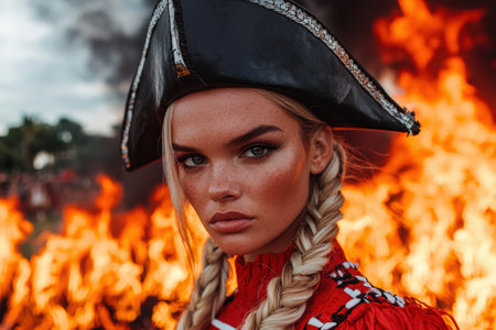 Pirate woman in front of fire