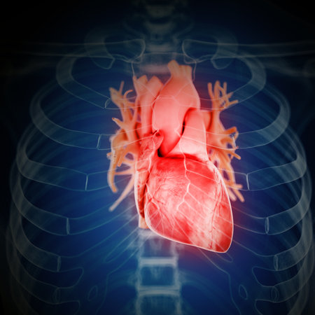 3d illustration of human heart anatomy with visible blood vessels and vessels