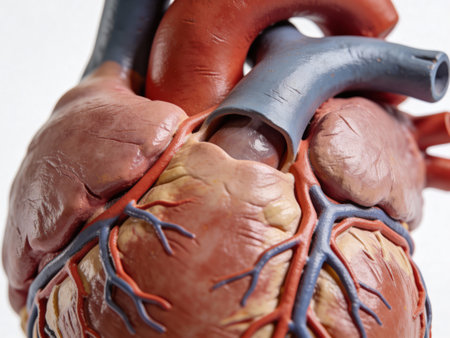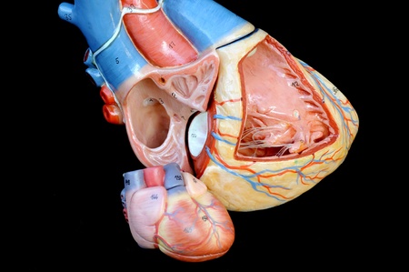 Human heart model in a science laboratory, close-up view.