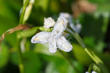 Detail of the pattern of the petals of a white dietes bicolor flower centered in the picture