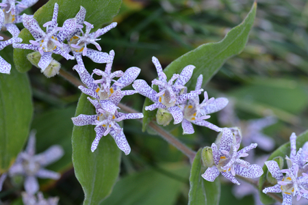 Toad lily (Tricyrtis hirta) flowers. Liliaceae perennial plants with speckled flowers from late summer to fall.