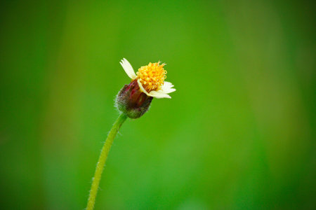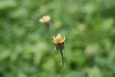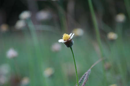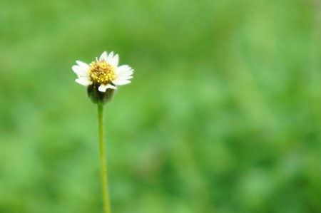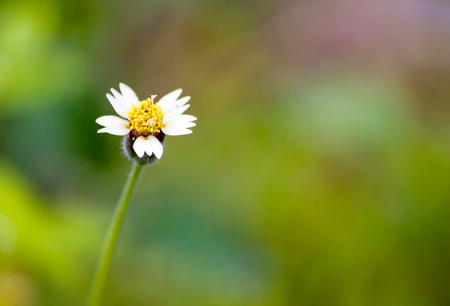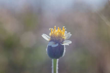 A lonely tridax procumbens flower in the wild, blurry background