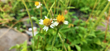 Tridax or Wild daisy flowers in garden.