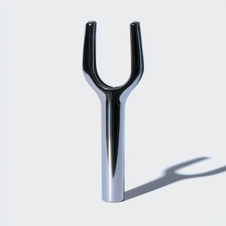 Sleek and Modern Fork-Shaped Object on Soft Gray Background, Ideal for Minimalist Design and Abstract Art Concepts, Perfect for Creative Projects or Stock Images
