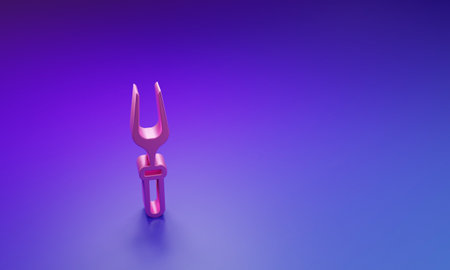 Pink Barbecue fork icon isolated on purple-blue background. BBQ fork sign. Barbecue and grill tool. Minimalism concept. 3D render illustration.