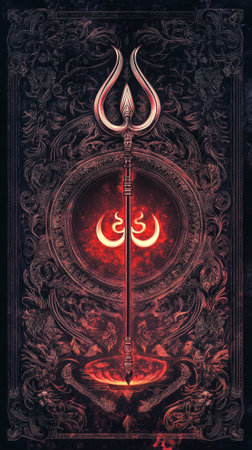 Intricate Illustration Featuring Trishula and Om Symbol for Maha Shivaratri Indian Festival. Concept of Spirituality, Divine Celebration, Cultural Heritage.. Vertical.