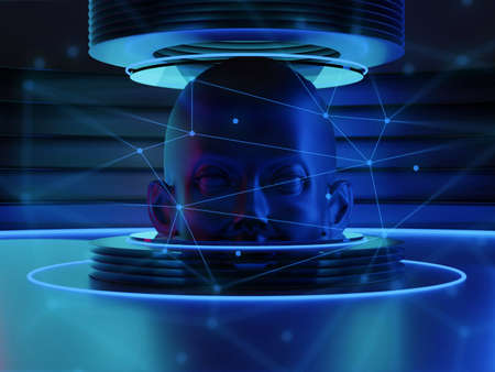 cyberpunk style, ai robot bionic automatic face, futuristic technology network server online, background illustration 3d rendering