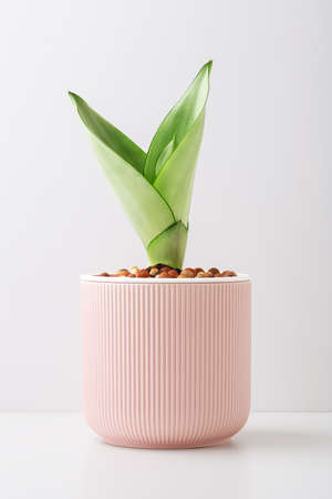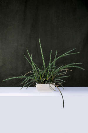 Indoor plant Sansevieria cylindrical in a pot on a white table