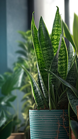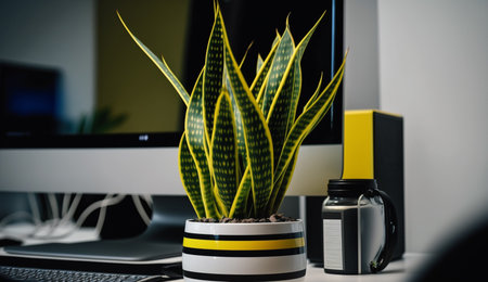 Discover the stunning beauty of a Sansevieria plant with vivid yellow edges, perfect for enhancing modern interiors, bringing a touch of nature indoors.