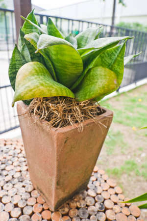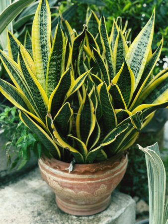 yellow and green leaves hanii ,Sansevieria trifasciata in planting pot