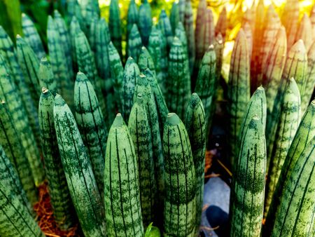 Macro sansevieria trifasciata or snake plant or succulent plant