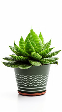 Stock image of a Haworthia Plant on a white background, small, rosette-shaped leaves, charming and compact Generative AI