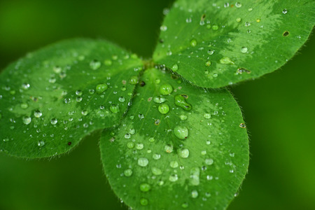 Rain droplets sit on a Clover leaf