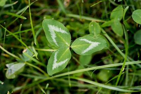 four-leaf clover on green background, closeup of photo