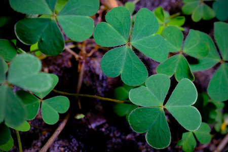 Natural background with three leaved shamrocks.