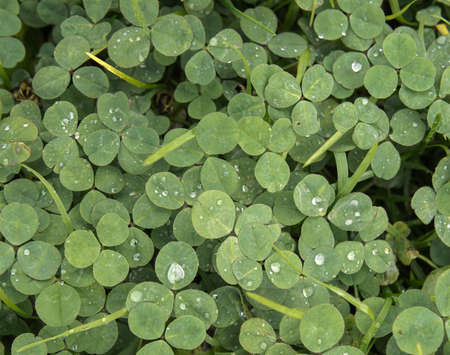 Clover field wet with dew in the morning