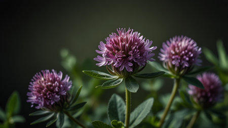 Purple clover flowers on a dark background, close-up