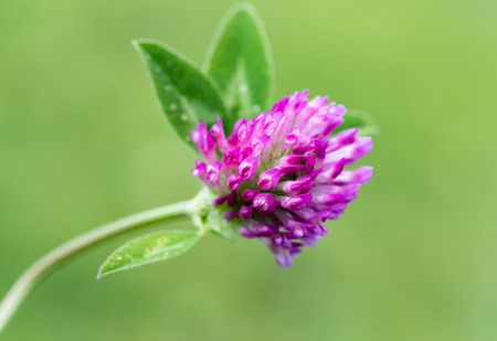 Clover flower with dew drops in the morning. Shallow depth of field.