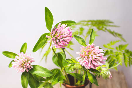 Blooming meadow clover in a clearing on a sunny summer day is a valuable forage and pasture crop. close-up