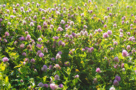 Floral summer background, soft focus. Blooming clover. Blurred background.