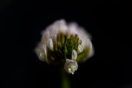 White clover flower on a black background close-up macro photography