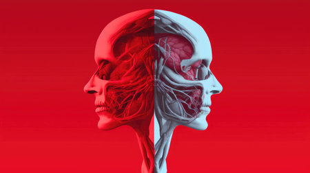 Multiple personality, identity disorder, borderline and Schizophrenia, mental health background. AI generated.