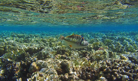 shooting under water. fish in search of food among karalli in the red sea. egypt