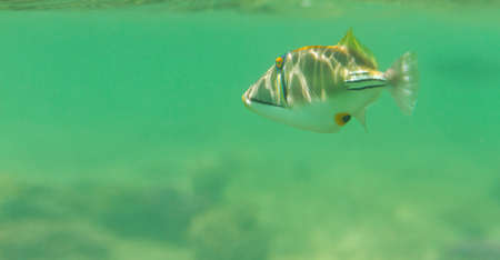 Yellowmargin triggerfish (Pseudobalistes flavimarginatus) in sea water