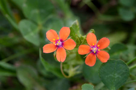 A closeup shot of small orange flowers on a blurred green background