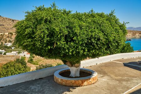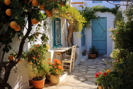 Greek backyard trees. summer plant. Generate AI