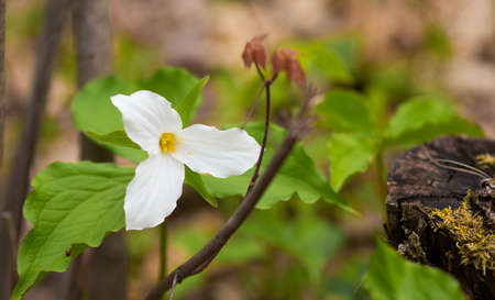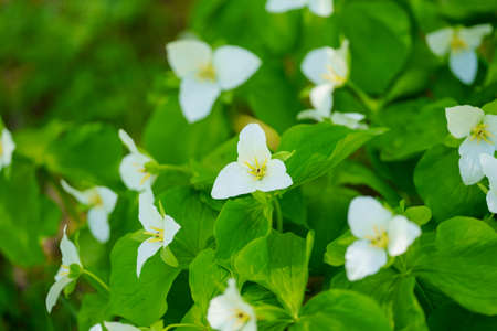 White Trillium (Trillium grandiflorum) blooming in woodlands. Ontario provincial flower