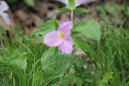 Pretty Pinkish Trilliums grandiflorum near the edge of a tree filled forest in SE Ontario.
