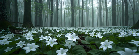 The forest floor becomes a canvas of white trilliums their pristine petals creating a carpet of floral beauty in the heart of the woods. Concept Nature, Wildlife, Beauty, Forest, Flowers