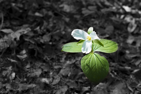 A White Trillium is singled out with Shallow Depth of field against a blurred out background of a trillium bed Trillium grandiflorum is the official emblem of the Province of Ontario and the State Wildflower of Ohio