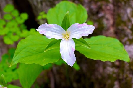Trillium Bloom Begins to Open in Spring along the Little River Trail in Great Smoky Mountains National Park