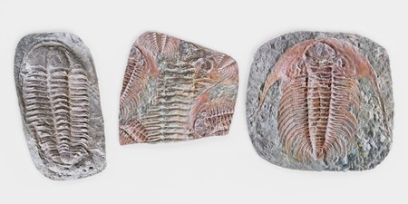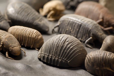 A trio of trilobite fossils that hint at how much life must have evolved since their time.. AI generation