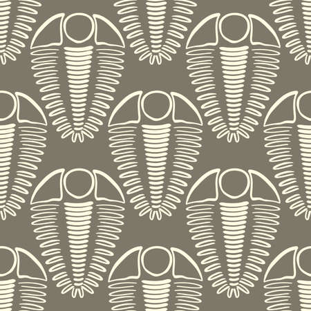 Trilobite vector seamless pattern background. Hand drawn arthropod ribbed shell marine fossils. Neutral brown duotone backdrop.Extinct cambrian period predators. Repeat for education, museum, school.