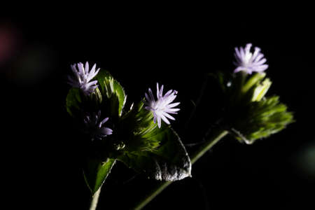 Beautiful nature background with cute white flowers and purple leaves. top view. High quality photo