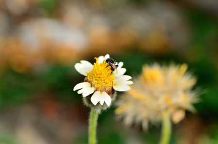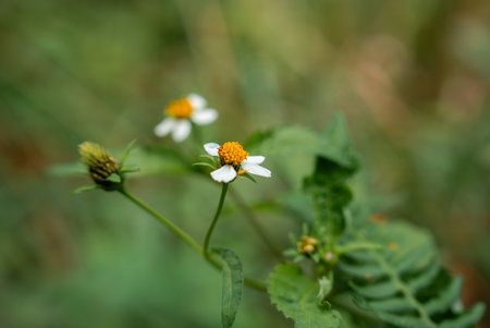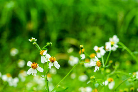 Mexican daisy, Tridax daisy, Wild Daisy on blur background.