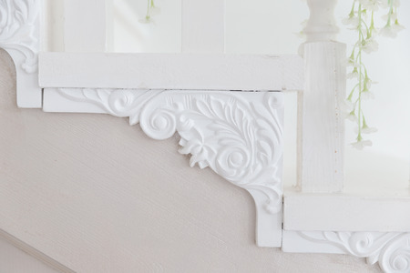 Close-up details of interior skirting ceiling of white color, classic style