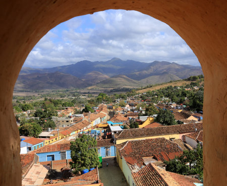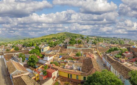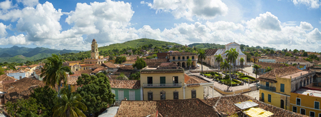 Trinidad, panoramic skyline with mountains and colonial ho and major tourist landmark in the Caribbean Island. Cuba.