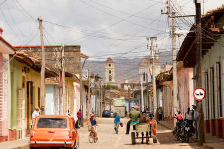 TRINIDAD, CUBA - MAY 25, 2014: Unidentified people on the street of Trinidad, Cuba. Trinidad has been a UNESCO World Heritage site since 1988.