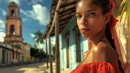Portrait of a beautiful young woman in the streets of Trinidad, Cuba.