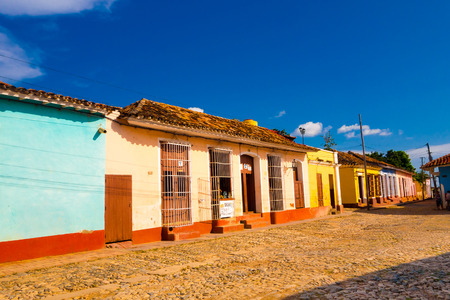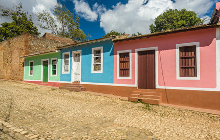 Colorful houses on the cobblestone streets in the UNESCO World Heritage city center of Trinidad Cuba.