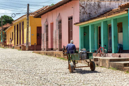 Trinidad, Cuba 15.12.2018 Horse and cart transport colourful buildings