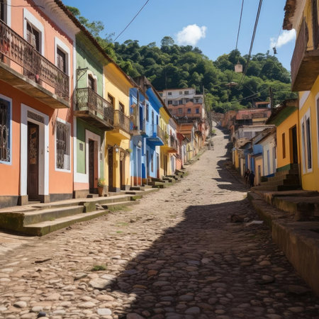 Vibrant streets of Santa Felicidad, Brazil with colorful houses and hills