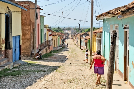 TRINIDAD, CUBA - FEBRUARY 4, 2011: People walk in the Old Town in Trinidad, Cuba. The Old Town is UNESCO World Heritage Site and is one of most recognized places in Cuba.