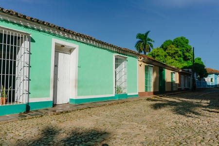 Cobblestone street with old colonial houses in the center of Trinidad, Cuba, Caribbean