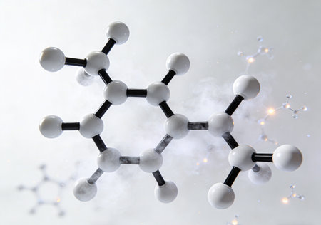 This abstract image features a detailed representation of molecular structures with interconnected atoms and colorful bonds, ideal for illustrating science and technology concepts.