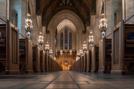 Chicago, United States: May 26th, 2016. Low angle of aisle at Fourth Presbyterian in downtown Chicago
